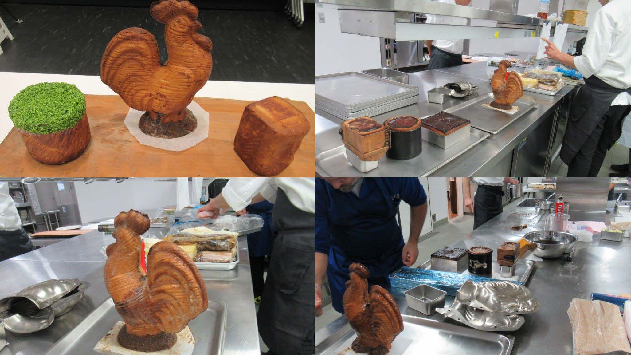 鶏のパイ包み等が型から外され、ハグホール展示撮影ブースへ順次移動されました。