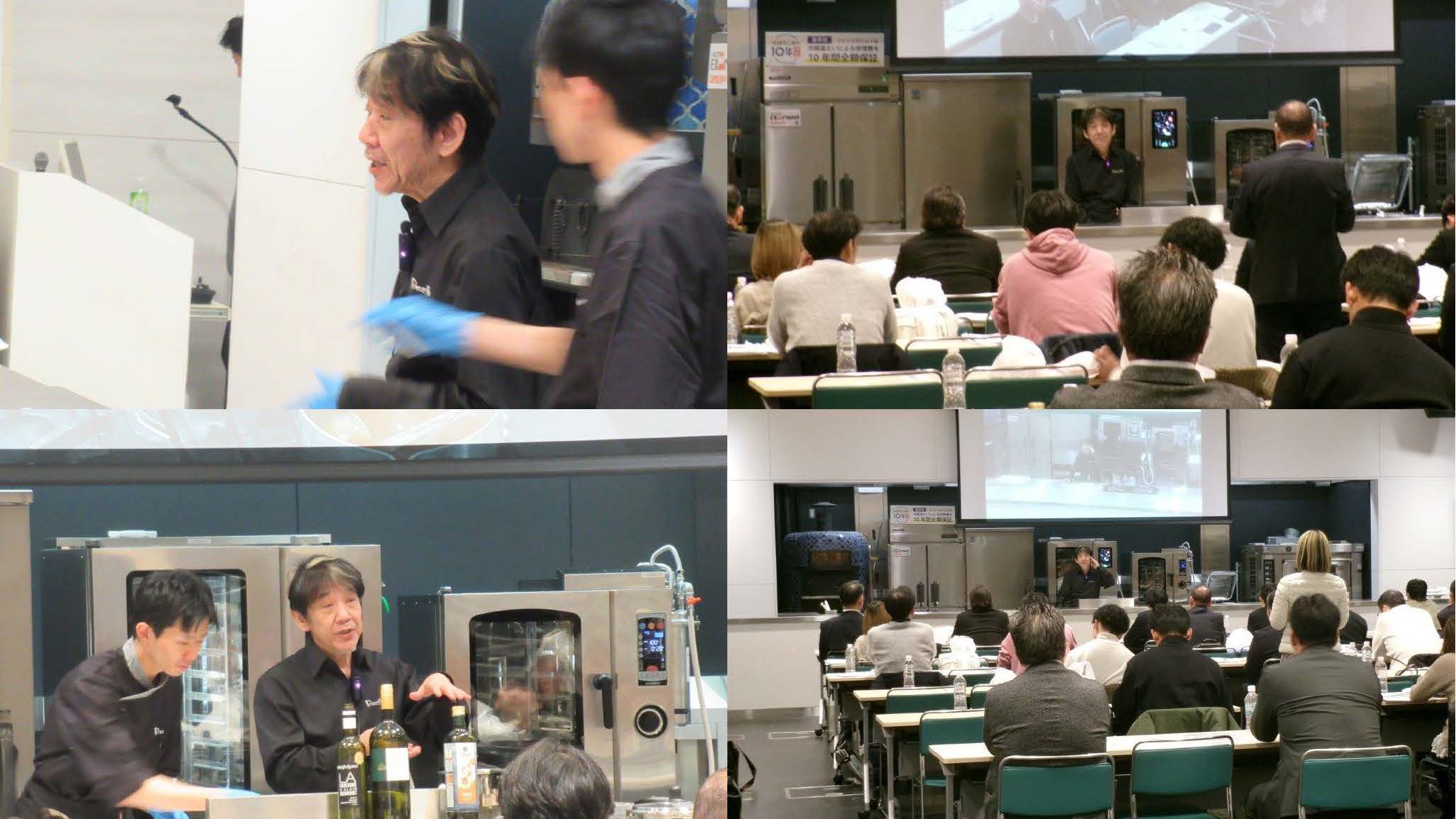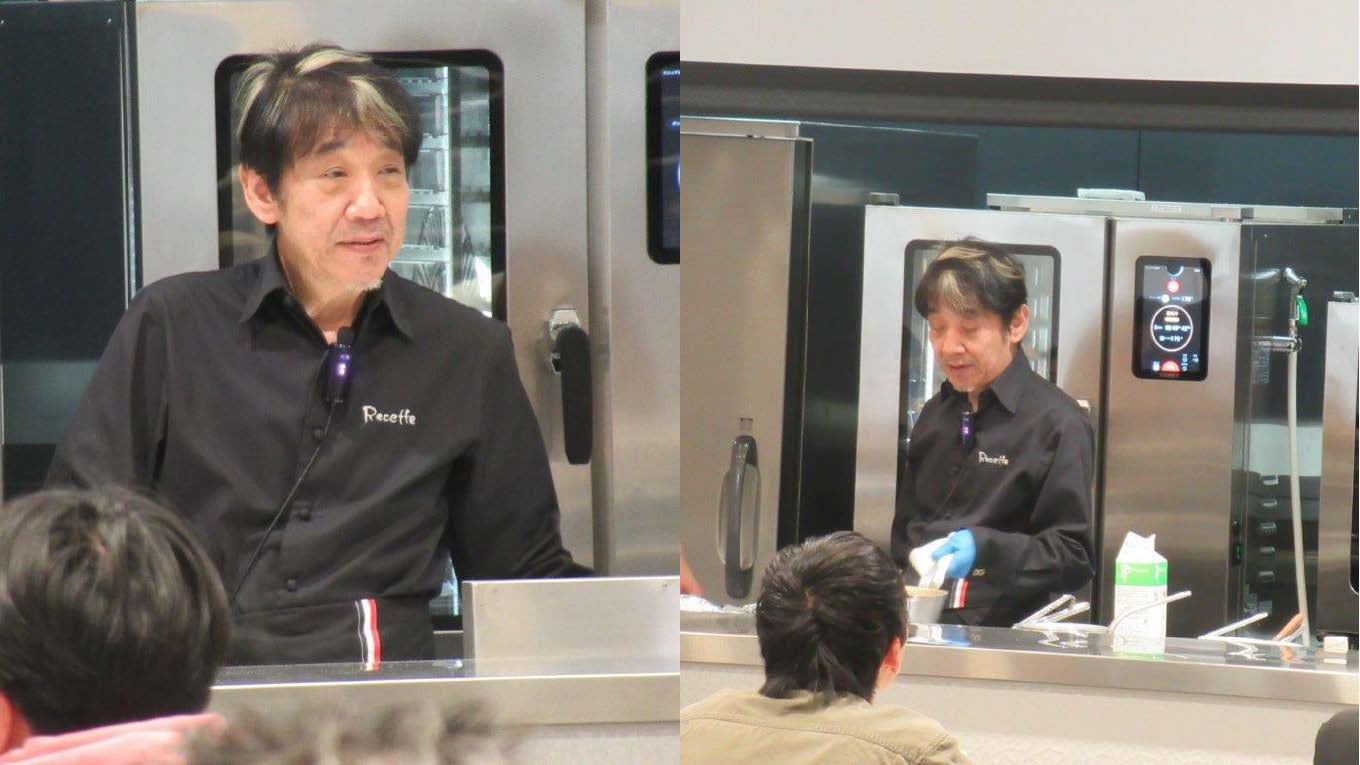 ハグホールでは、依田シェフによる調理実演が開始されました。